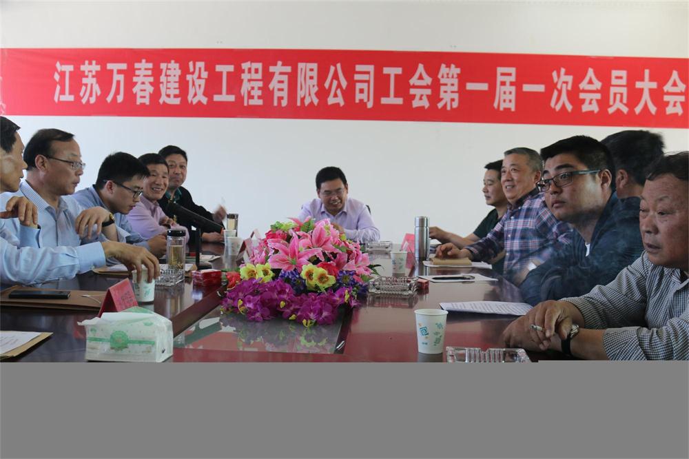 在縣總工會和建工局的關心支持下,江蘇萬春建設工程有限公司工會正式成立了!五月十六日下午,工會舉行第一屆一次會員大會,郎風錦同志當選為工會主席。縣總工會薛主席,建工局陳主任到會并講話,對公司工會的成立表示祝賀,對工會工作提出了具體要求。兄弟單位代表觀摩了成立大會。